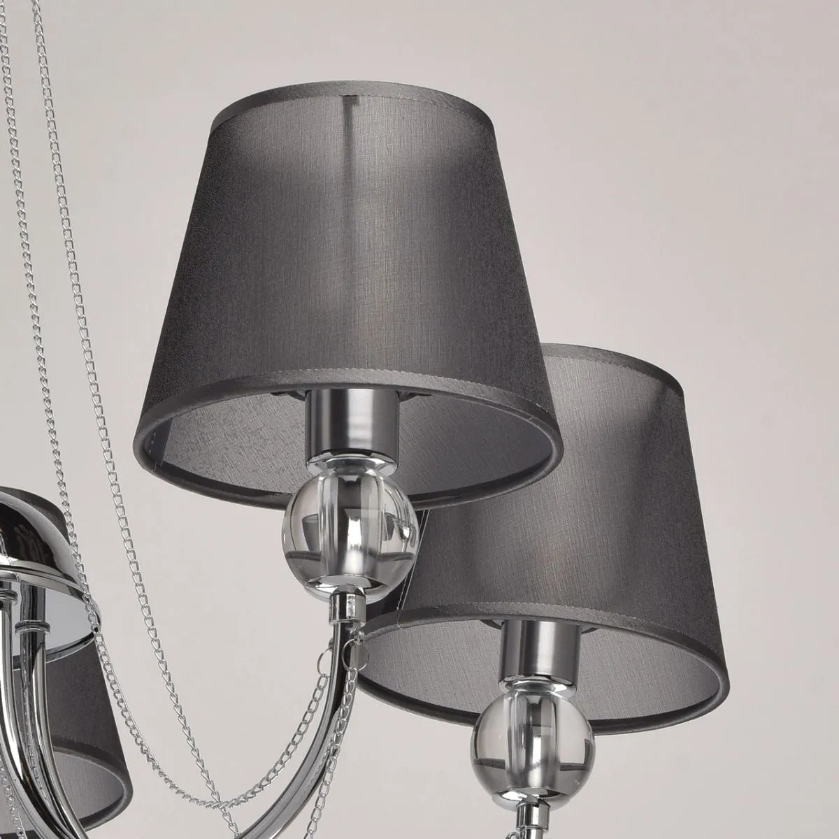 Металлическое основание цвета хрома. Плафоны - органза. Декор - хрусталь