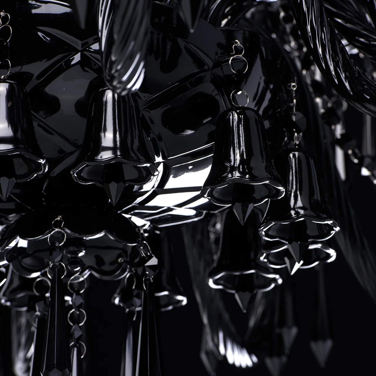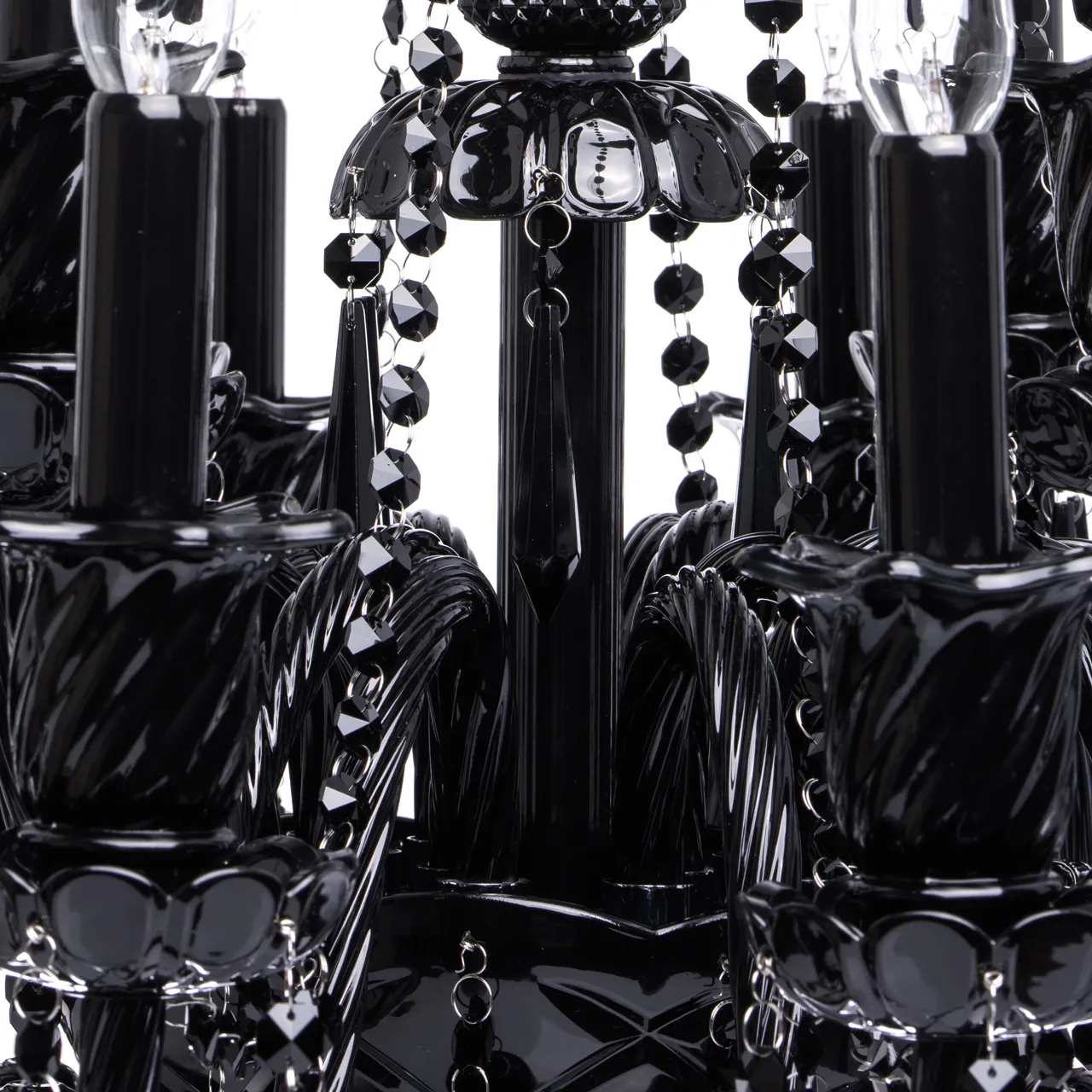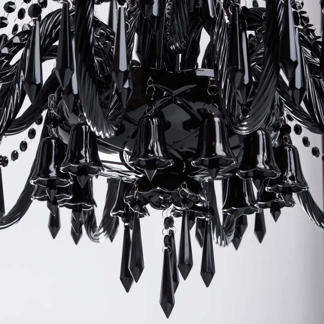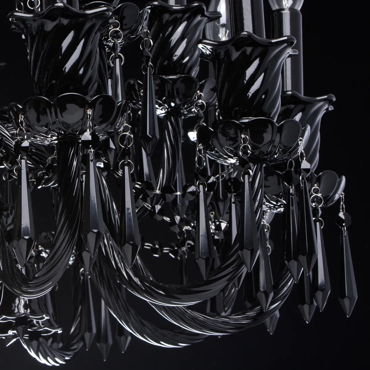 Стеклянное основание, декоративные элементы из черного стекла и хрусталя