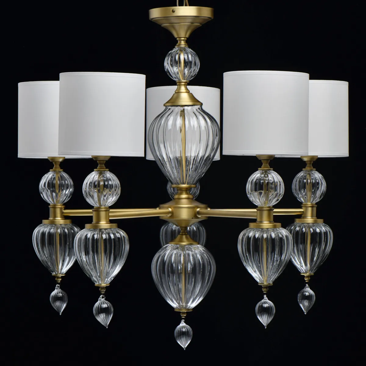 Основание/металл/латунь Абажур/текстиль/белый Декор/стекло
